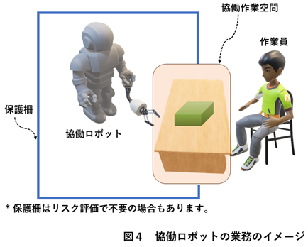 協働ロボットは、図4に示すように、労働者と共通の作業空間を持って、共同作業に当たります。
