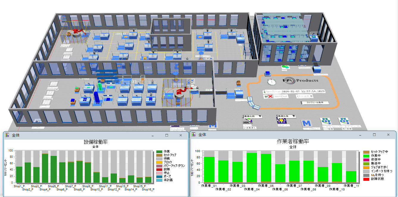 仮想倉庫で導入したい設備を動かし、生産性が何パーセント向上し、何人で運用できるのかを